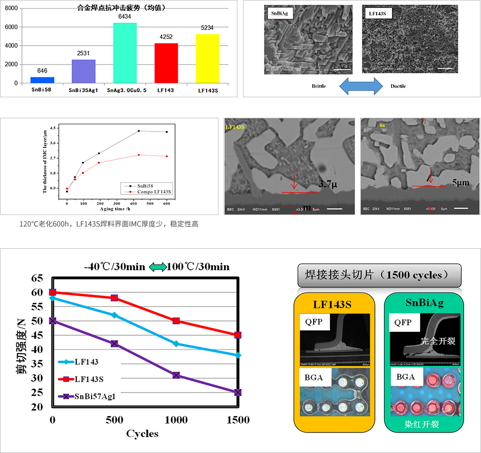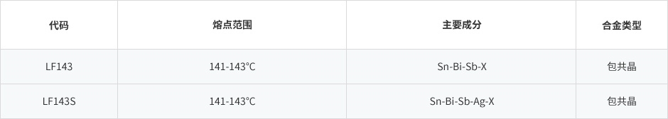 LF143 系列低溫無鉛焊料采用新的合金體系設計理念,提高了SnBi系焊料的可靠性,能滿足不同各類低溫組裝應用場景的需求。
