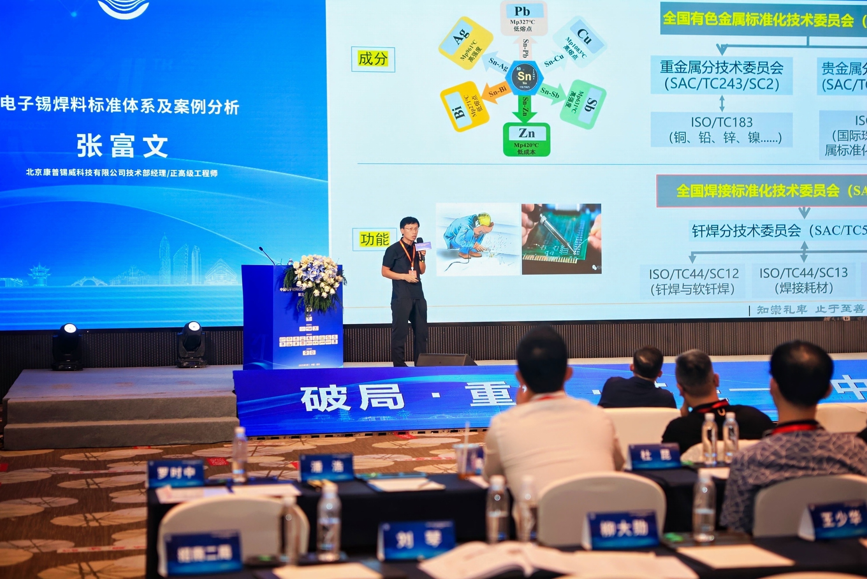 康普錫威研發負責人張富文教授受邀作了題為《電子錫焊料標準體系及案例分析》的專題報告,詳細論述了當前國內外電子焊料的標準體系建設情況及行業展望。