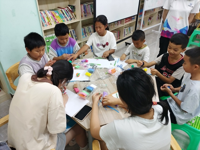 支教活動(dòng)課程設(shè)計(jì)秉持著“勞逸結(jié)合,寓教于樂(lè)”的理念,開設(shè)了語(yǔ)文、數(shù)學(xué)、英語(yǔ)、科學(xué)等學(xué)科類課程,以及手工、美術(shù)、音樂(lè)、文體等素拓類課程。采取積分獎(jiǎng)勵(lì)制度激發(fā)學(xué)生參與課堂的積極性,并根據(jù)學(xué)生學(xué)段分布情況,適當(dāng)開展分班教學(xué)。